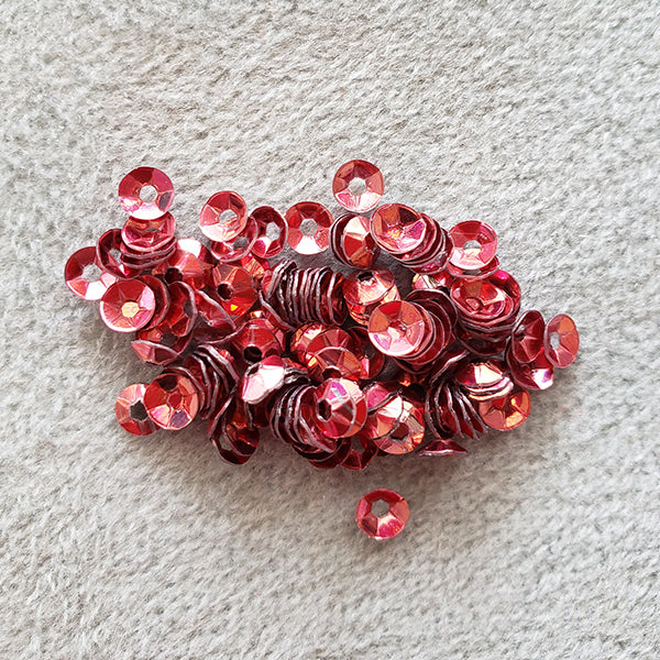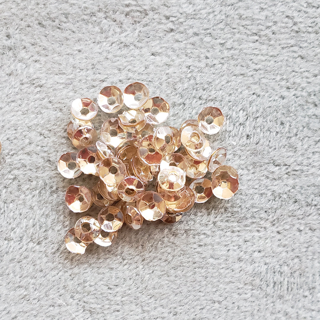 Las lentejuelas de copa, con forma cóncava, son materiales esenciales en el bordado con pedrería, al igual que las mostacillas, mostacillones, lentejuelas, canutillos y cristales.